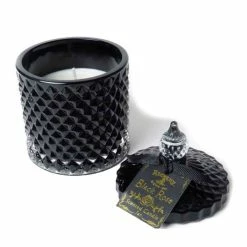 The candle (wax and wick) is placed in the glass candle jar (packed individually). The wax is scented. Approximate burning time max. 12 hours. Price per piece. Brand: ALCHEMY GOTHIC. Dimensions approx .: total height – 13cm, height without the upper lid – 7.5 cm, diameter – 8.2 cm. Composition: glass, wax.