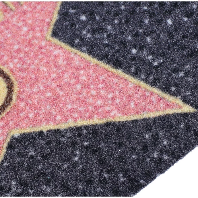 Dimensions approx. 60 cm x 40 cm.The bottom part is made of rubber thanks to that the doormat sticks well to uneven terrain Composition: 100% polyamide, rubber. Washable up to 30 °C