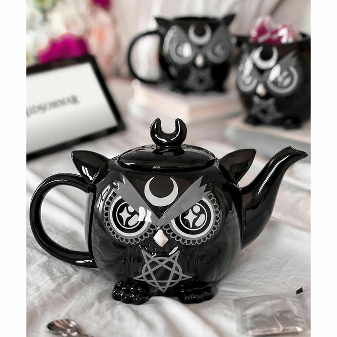 stylish ceramic teapot with lid, decoration.